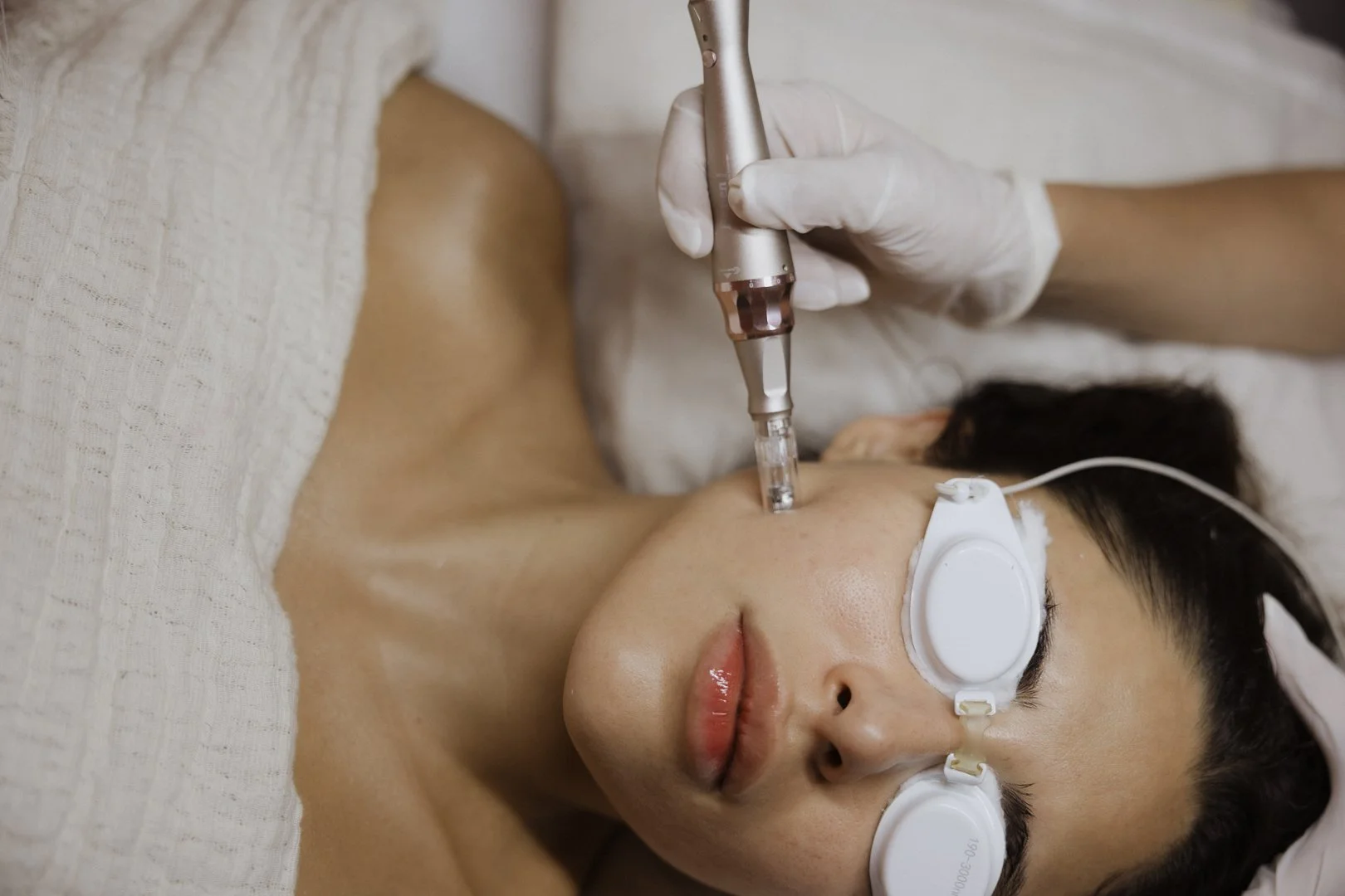 Microneedling uses a fine needle to create microwounds, or channels, in the skin. This triggers the production of capillaries, elastin, and collagen.